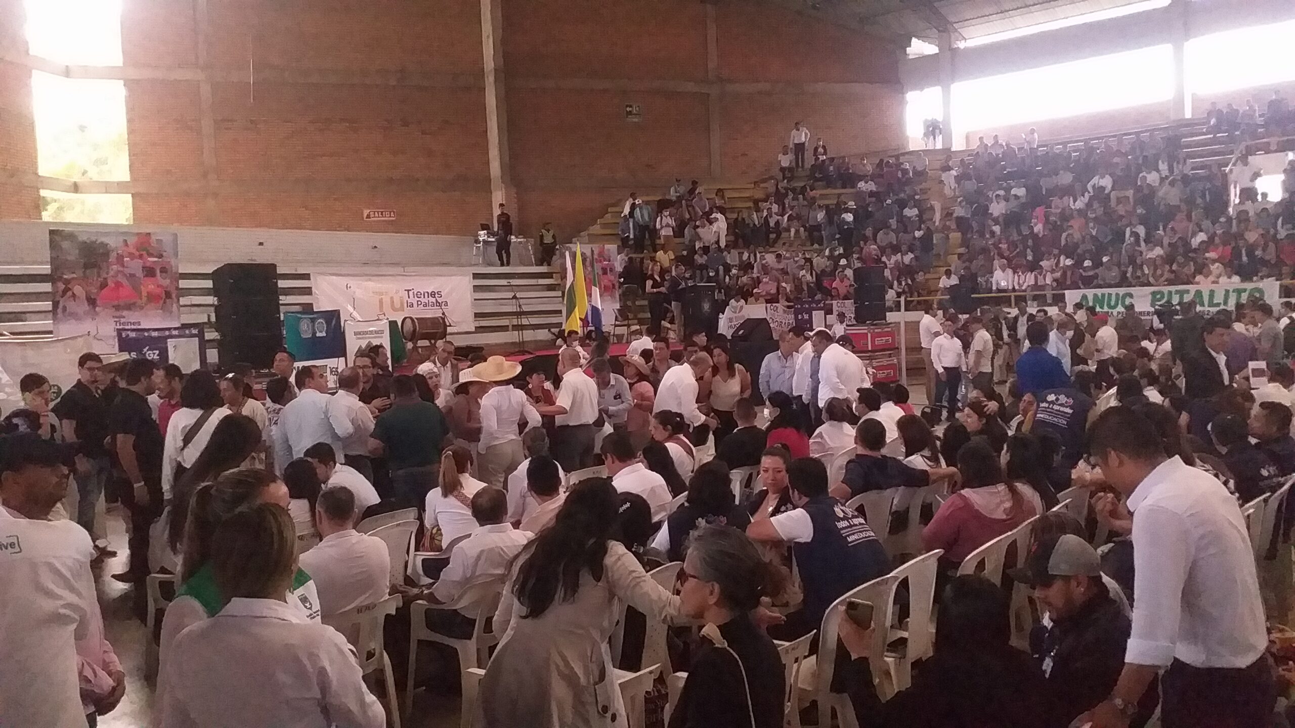 El 5 de noviembre del año en curso, más de 4 mil pobladores de Pitalito y de otros municipios del Huila – según el informe presentado por la Alcaldía Municipal- se dieron cita en las instalaciones del Coliseo de Ferias del municipio para participar en los Diálogos Regionales Vinculantes, en cumplimiento de la agenda del Gobierno Nacional. En la planta baja se ubicaron los alcaldes, periodistas y demás funcionarios públicos; en las gradas, todos los interesados en acudir al llamado del diálogo que busca construir un país de todos y para todos. En la plataforma principal estuvieron los mandatarios territoriales y delegados gubernamentales, es decir, el Alcalde de Pitalito, el Gobernador del Huila y la Ministra de Deporte. Así mismo, estuvieron sobre la tarima algunos invitados especiales: Adolfo «El tren» Valencia (que estuvo en el Monumental presenciando el 5 a 0 de Colombia contra Argentina), y las jugadoras de la Selección Colombia de Futsal, que recibieron un caluroso aplauso por parte de la gente de las graderías.