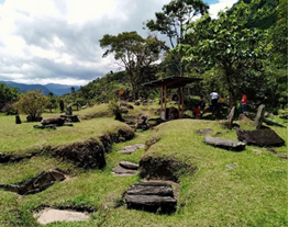 Después de conocer esta familia bastante particular continuamos el camino hasta llegar al Parque Arqueológico La Maternidad, en la Vereda la Gaitana a 2.5 kilómetros de Puerto Quinchana. Se encuentran 23 tumbas y 3 estatuas, entre ellas La Diosa de la Maternidad, el Chaman Mambero y El Chaman Medico, estas tumbas pertenecían a niños y mujeres, fueron descubiertas en 1942 en una excavación realizada en 1946.