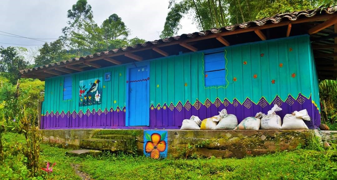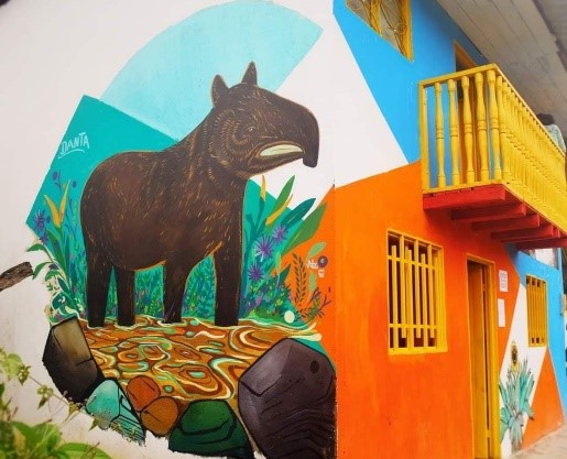 Nos acercamos al esperado destino:, el pueblito que enamoró a los artistas , quienes le volvieron a dar vida y color a través de sus pinceles. Las paredes que un día recibieron balazos se convirtieron en lienzo para contar una nueva historia. Por medio del proyecto “Plan Fachada” liderado por el colectivo “Construyendo Sociedad” las 64 casas del centro poblado, se transformaron en una galería de murales, que transmiten las riqueza natural, ecológica, gastronómica y cultural de la región.
