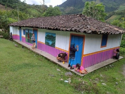Después de un largo recorrido en auto, una carretera destapada, e increíbles paisajes que se quedaron en la memoria, como fotografías que no podremos revelar, llegamos al destino. El plan fachadas inicia desde la primera casa que recibe al visitante, los colores amarillo, verde, morado y azul forman un paisaje alegre y esperanzador. El pueblo se ve muy solo y algunas casas no están habitadas pues la mayoría de sus pobladores se sumergen en la montaña para cuidar sus cultivos. Cada casa tiene un paisaje pintado, realizado por artistas viajeros que se han ido sumando al proyecto, la danta, el oso, el águila, la cascada y la chiva son símbolos representativos que quedaron plasmados en esta nueva historia.